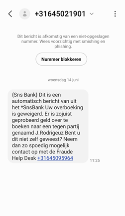 - Bovenaan het sms’je staat geen ‘ASN Bank'. Dat moet er wel staan.