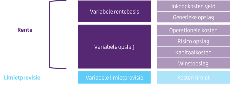 | Variabele rentebasis | Variabele opslag | Variabele limietprovisie |